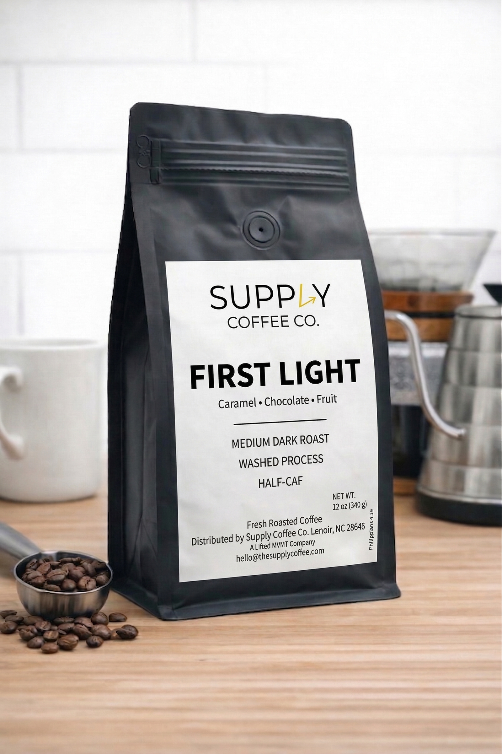 First Light is crafted for the moments when you want warmth and clarity without the full intensity of a traditional cup. Built from a 50/50 blend of regular and decaf coffees, it delivers balanced sweetness, gentle fruit notes, and a smooth chocolate body — all with a softer rise in energy.